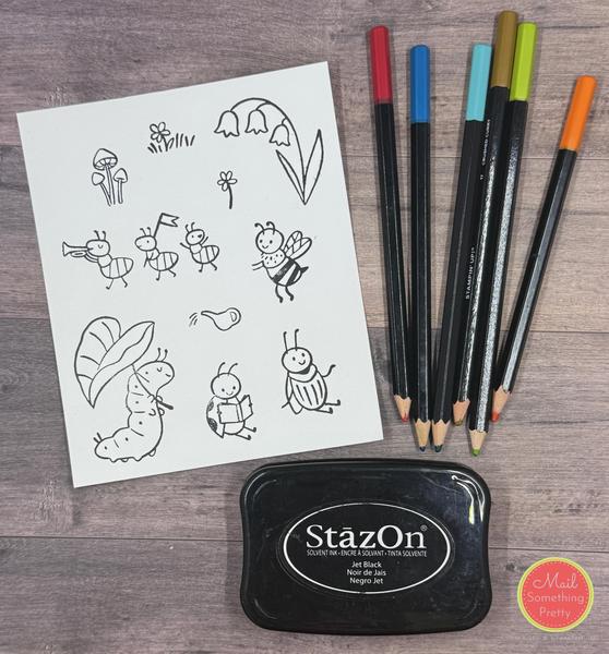 Pencils with the Blender Pen (or Water Pen), you must use StazOn Ink. This ink is designed to not bleed when water is introduced to it. It's a permanent ink which also means your stamps will become stained, but the staining will not affect your stamping. HOWEVER - beginning in May, you'll also be able to use Stampin' Up!'s new Hybrid Black ink instead of