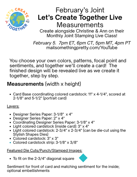 Ann & I will be going live this Thursday evening for our newly redesigned joint lives. 7pm ET, 6pm CT, 5pm MT & 4pm PT - mailsomethingpretty.com/YouTube Watch and create with us live