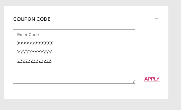 Click the + and a dropdown box will appear. Copy & paste the code(s) emailed to you in this box and then click apply. That amount will be deducted from your total.