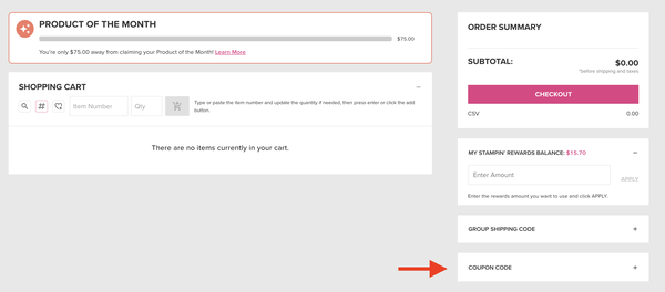Beginning today, you can redeem your Bonus Days Coupons. The last day to redeem them is on February 28. You will see a box on the shopping cart page where you can copy & paste your code. If you have more than one code, you can copy and paste all of them at once. You can also redeem any Rewards Points on the