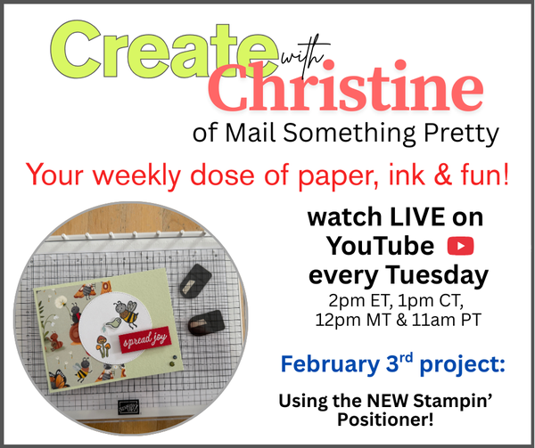 We used it for the first time together on this live. You can watch my lives at 2pm ET (1pm Central, 12pm, MT & 11am PT) on YouTube every Tuesday. You can also find the replays there under the "lives" section. https://mailsomethingpretty.com/YouTube I go live every Tuesday and every first Thursday with my Australian Demonstrator crafting friend Ann (see details below).