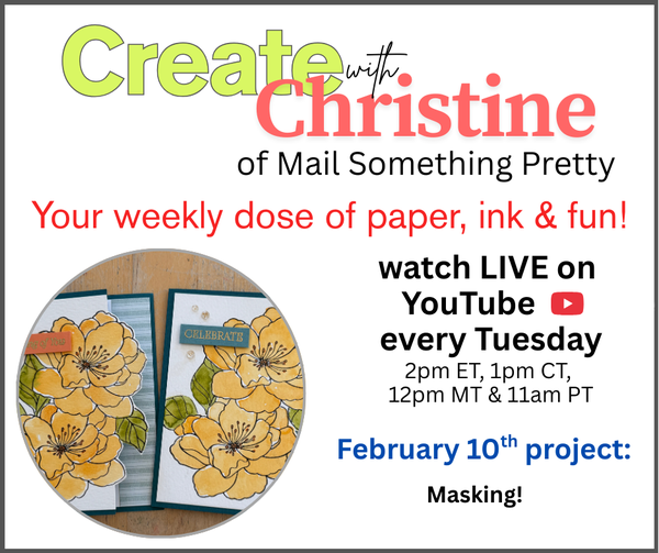Speaking of lives, I'm going live later today showing an elegant card that uses the masking technique. It's such an easy way of creating perspective and layering in your cards.